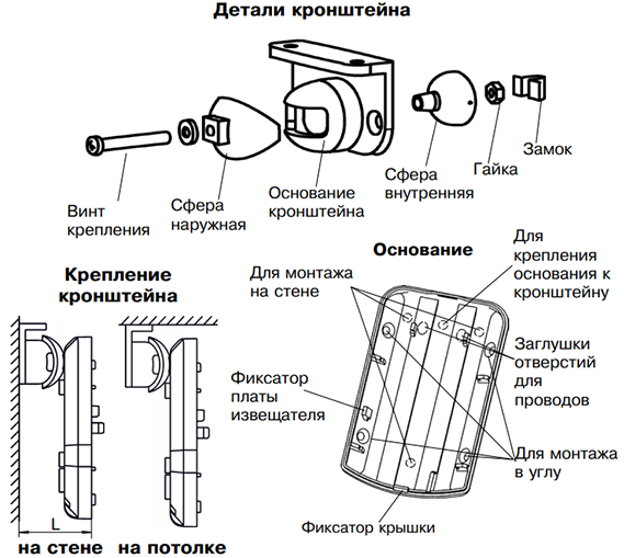 | Угол зоны (Охранные датчики) | 90° объемная |