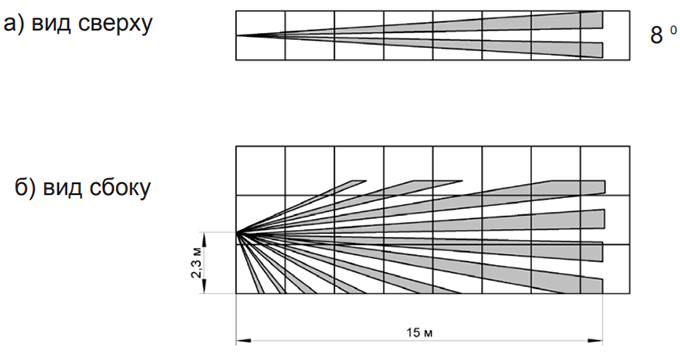 | Угол зоны (Охранные датчики) | 8° поверхностная |