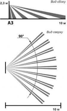 | Угол зоны (Охранные датчики) | 90° объемная |